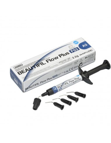 Beautifil Flow Plus F03 – jest materiałem, który może zostać wykorzystany samodzielnie do wypełniania ubytków, a także do wypełniania wcześniej wymodelowanych materiałem Beautifil Flow Plus F00.