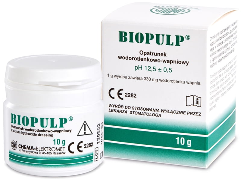BIOPULP jest preparatem wodorotlenkowo-wapniowym o silnie alkalicznym odczynie (pH wynosi 12,5±0,5). Działa wysuszająco, co ma ogromne znaczenie w przypadkach uporczywych wysięków zapalnych. Powoduje rozpuszczenie resztek żywej miazgi po zabiegu ekstyrpacji w znieczuleniu oraz rozpuszcza resztki organiczne w kanale w miejscach niedostępnych dla narzędzi.