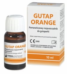 GUTAP ORANGE jest rozpuszczalnikiem. Posiada właściwości rozpuszczania gutaperki i materiału uszczelniającego (szczególnie na bazie tlenku cynku i eugenolu), czyniąc je łatwiejszymi do usunięcia z kanału korzeniowego podczas powtórnego leczenia endodontycznego.