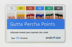 Ćwieki gutaperkowe z oznaczeniem długości niezbędne do szczelnego, trwałego oraz szybkiego wypełniania kanału. Zachowują optymalną plastyczność oraz gładką powierzchnię co pozwala na łatwe wprowadzanie do kanału. Zgodne z rozmiarami ISO.