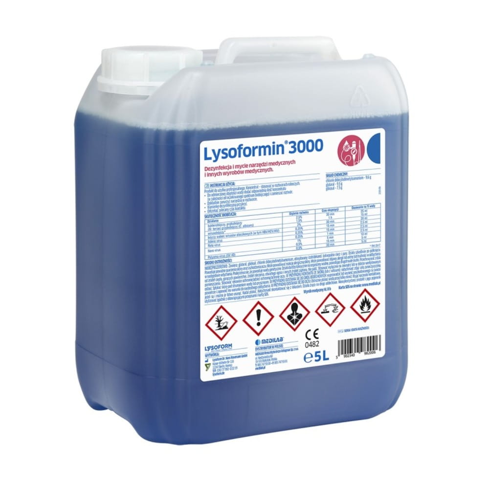 Lysoformin 3000- preparat w koncentracie na bazie aldehydu glutarowego, do manualnej dezynfekcji i mycia narzędzi, endoskopów i innych wyrobów medycznych oraz powierzchni.