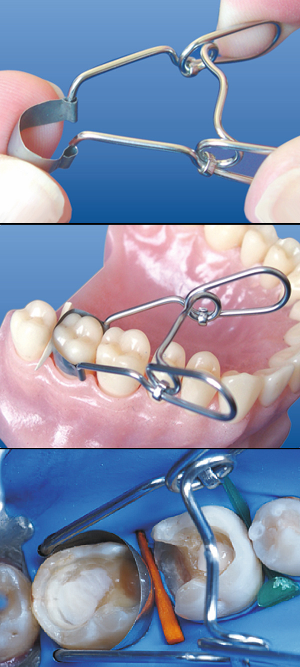 Profesjonalne matryce siodłowe z zaciskiem sprężynowym przeznaczone do odbudowy ubytków klasy II w zębach bocznych. Wykonane z wysokiej jakości stali nierdzewnej, zapewniają doskonałe przyleganie do powierzchni zęba i stabilność podczas pracy.