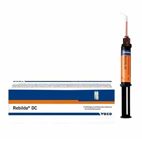 Rebilda DC Dentin od VOCO, to produkt najwyższej jakości, który swoje zastosowanie znajdzie w adhezyjnej odbudowie filarów martwych i żywych zębów oraz mocowaniu wzmocnionych włóknami sztyftów kompozytowych. Rebilda DC pozwala na bardzo szybkie opracowanie dzięki możliwości utwardzania światłem, dodatkową pewność daje możliwość utwardzania chemicznego. Dzięki ulepszonym końcówkom aplikacyjnym, zwiększa się wygoda użycia a także oszczędność materiału.