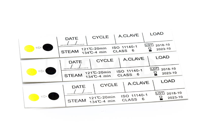 Testy do sterylizacji parowej pozwalają na łatwe i precyzyjne określenie, czy proces sterylizacji w autoklawie przeszedł poprawnie. Działają w zakresie temperatury od 121°C do 135°C. Właściwości produktu: Do monitorowania chemicznej sterylizacji parowej Pod wpływem sterylizacji następuje stopniowa zmiana koloru na pasku wskaźnikowym Zakres temperatury: od 121°C do 135°C Czas: 4 min. - 20 min Paski posiadają miejsce na naniesienie notatek.