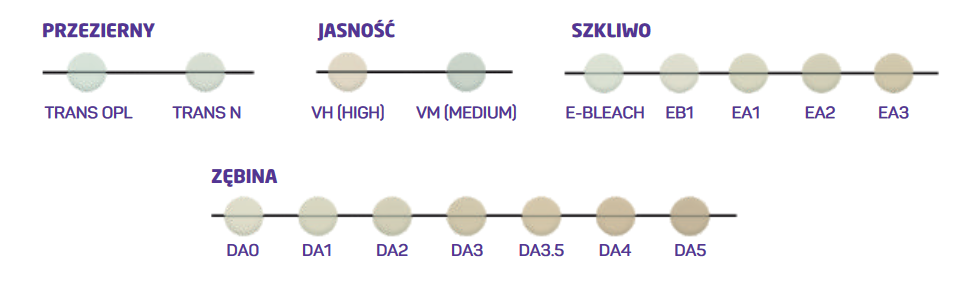 - Przewidywalność odcienia ( nie zmienia się w trakcie polimeryzacji)
