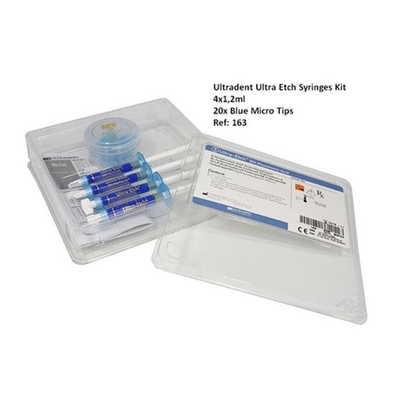 Wytrawiacz Ultra-Etch- uniwersalny wytrawiacz (35% kwas fosforowy), który można wypłukać w 5 sekund. Stosuje się go do wytrawiania szkliwa i zębiny (przed zastosowaniem materiałów złożonych, laków do bruzd i szczelin), oczyszczania powierzchni porcelany, oczyszczania powierzchni metalu, kondycjonowania powierzchni kompozytu. Wyjątkowe właściwości wytrawiacza, m.in. zawartość surfaktantu zmniejszającego napięcie powierzchniowe, pozwalają na łatwe i całkowite usuwanie go po zakończeniu wytrawiania (w ciągu 5 sekund) z użyciem sprayu powietrzno-wodnego. Wykazuje optymalną lepkość, brak spływania wynikającego z siły ciążenia. Przy 15 sekundowym wytrawianiu ubytku – zębina jest wytrawiana na optymalną głębokość 1,5 mikrona. UltraEtch samoogranicza głębokość wytrawianej zębiny! Co ważniejsze, nawet po 60 sekundowym wytrawianiu ta głębokość nie jest większa niż 3 mikrony, co optymalizuje siłę wiązania systemów wiążących i zapobiega nadwrażliwości pozabiegowej, a także ewentualnym podrażnieniom miazgi.