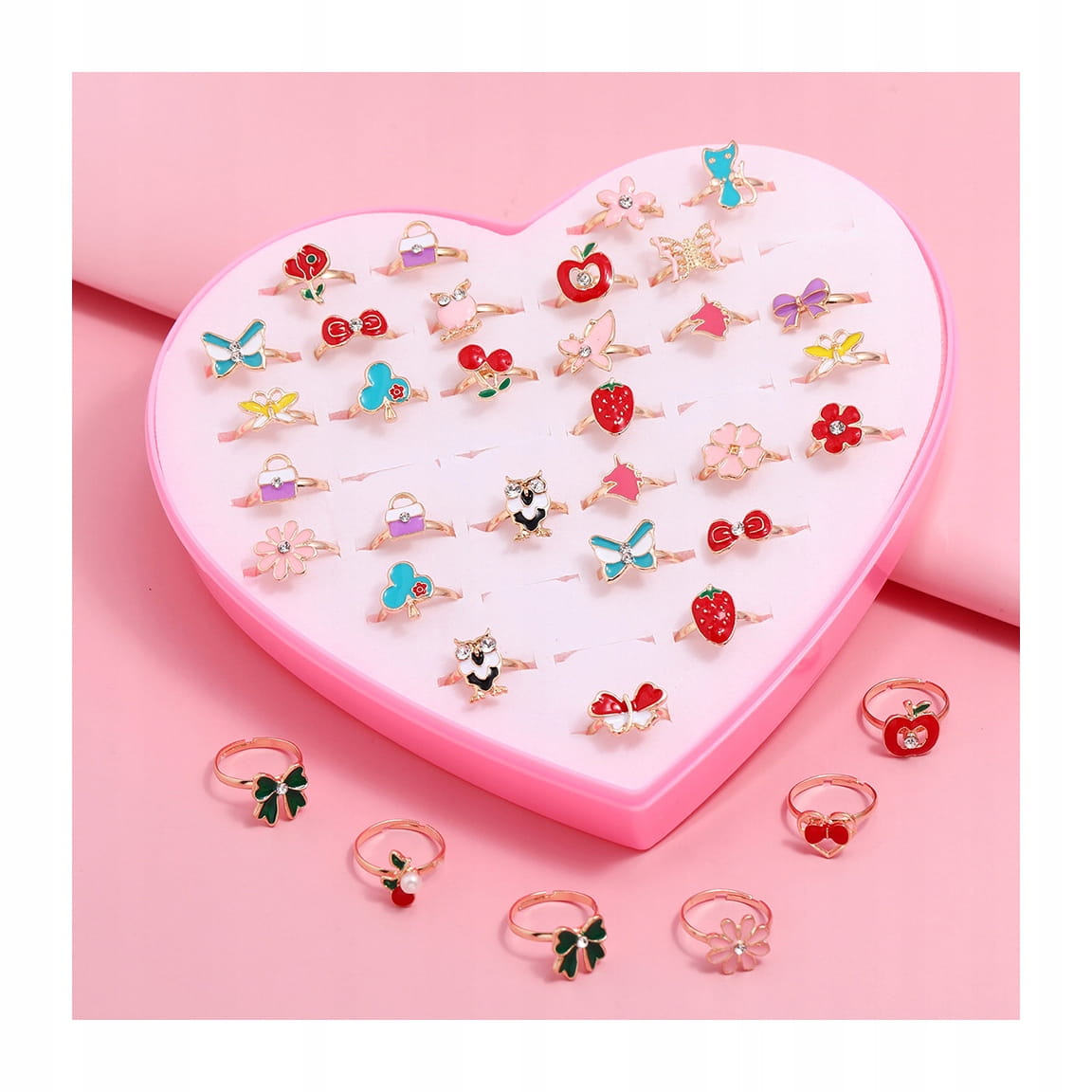 Plastikowe pierścionki dla małych elegantek. Mix pierścionków zawiera wzory w słodkich kolorach i o różnych kształtach.